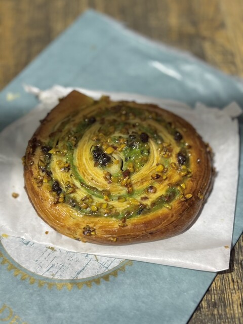 • Du Pain et des Idées - 表面はサクッ、中はしっとりバターの香り豊かな生地、巻き込まれているのはダークチョコチップとマイルドなピスタチオペースト