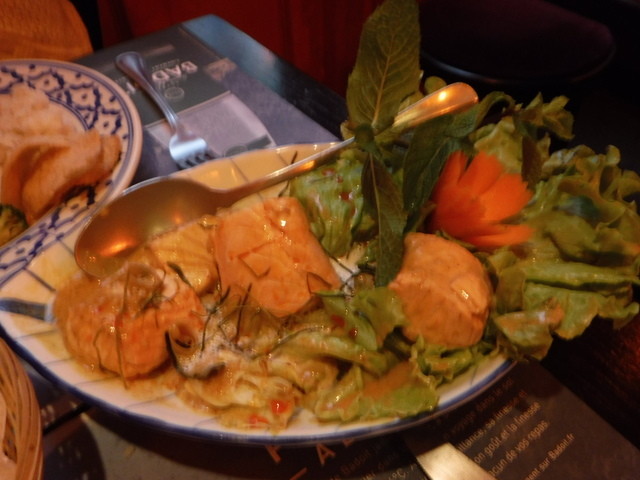 サーモンのカレーはこれはとても美味しかったです。ビストロでも肉厚のサーモンが多用されているように、