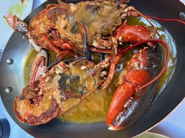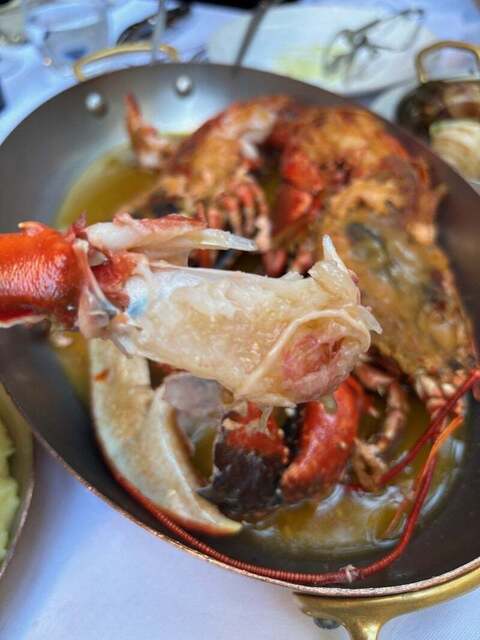 ブルーオマール海老のグリル、コニャックソース 8000円ぐらい サイドはマッシュポテトにしました