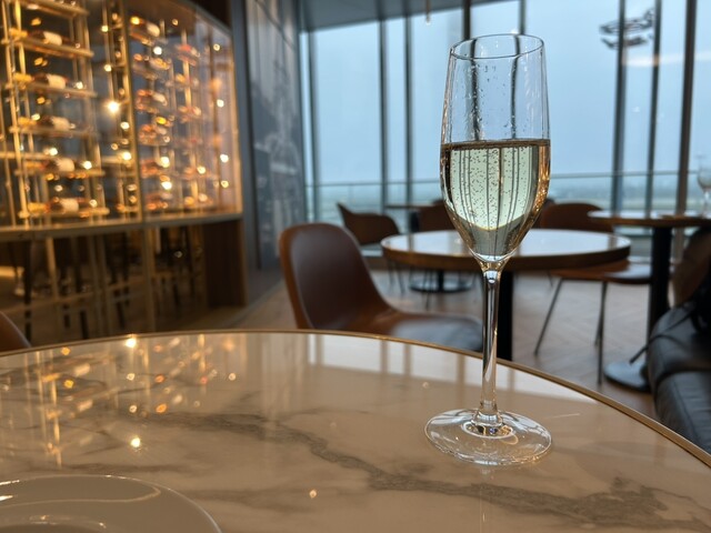 初めてのCDGスタアララウンジへ。噂通りとても素敵な空間。まずは泡で乾杯。