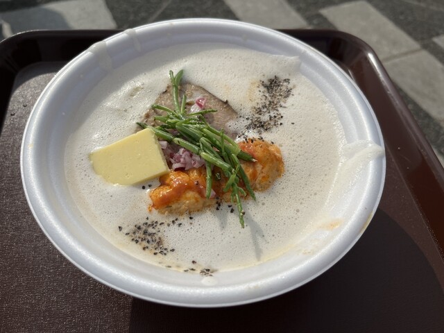 オマール海老の豚骨。豚骨感はなく、オマール海老の旨味がスープにしっかり反映、凝縮されたクリーミーな仕上がり。口当たりも優しい。味はちょいと濃いけど、存分にその美味しさを堪能することができる。