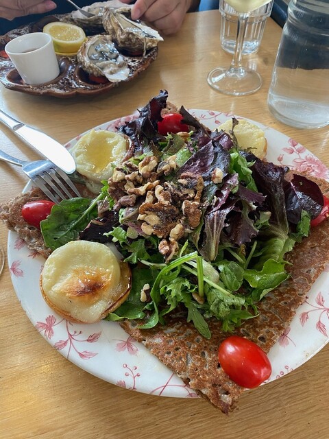 あまりガレットは日本でも食べないですが、本場のガレットはどんなんだろうとナポレオンの棺を見た後に娘と訪問。ガレットに載っているチーズも美味しいのですが、生地のもちもち感は私の好きな食感でした。ガレットの蕎麦粉の風味が生きており、野菜に味があります。日本の野菜より味が濃いように感じます。牡蠣もあったので、牡蠣も白ワインと一緒に頂きました。ヨーロッパで出される牡蠣は、小ぶりですが、日本の牡蠣より味が濃...