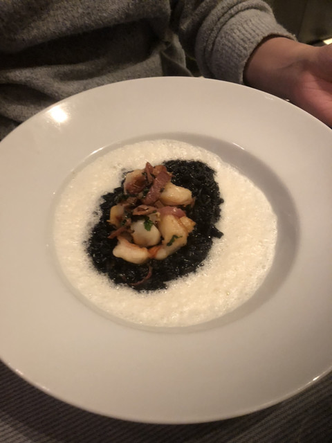 2品目は私はエスカルゴ料理、嫁は海鮮イカスミリゾット。