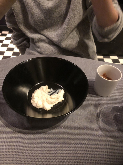 4品目は私はフレンチトーストのチョコソースみたいなもので、嫁のはアイスクリームにお米を入れてスイーツ系リゾットのようなデザート。