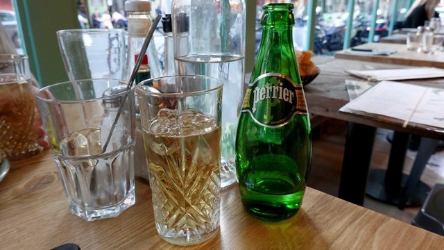 ウィスキーと炭酸水をもらって、ハイボールを自作します。