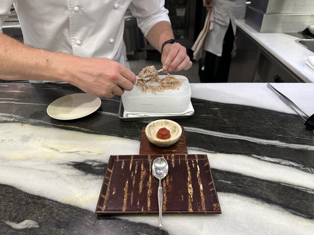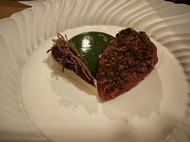 全体的にはしっかり目のフレンチ系ソースが多いです。グランメゾンにしては2時間ちょっとで非常にテンポも良いですが、コスパは結構悪いですね。