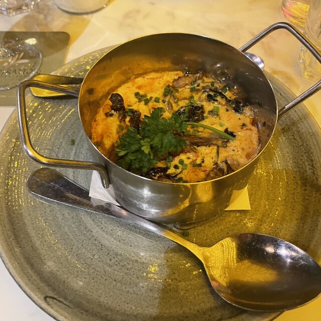 エスカルゴはミルキーなソースで煮込まれていて最高に美味しい。今までのエスカルゴで1番美味しいです。パンによく合うお味です。