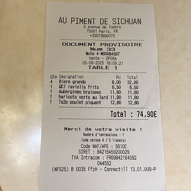 (メニュは漢字とフランス語の併記でした)