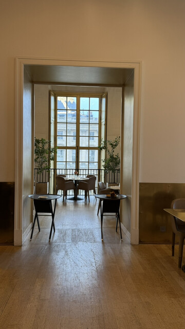 ベルサイユ宮殿の中にあります。エレベーターで上がって窓からはベルサイユ宮殿が見えます。それだけでも豪華な気分になります。食事はマリーアントワネットが好きだった、チョコレートケーキと、スープとお肉料理でした。優雅な気分になりました