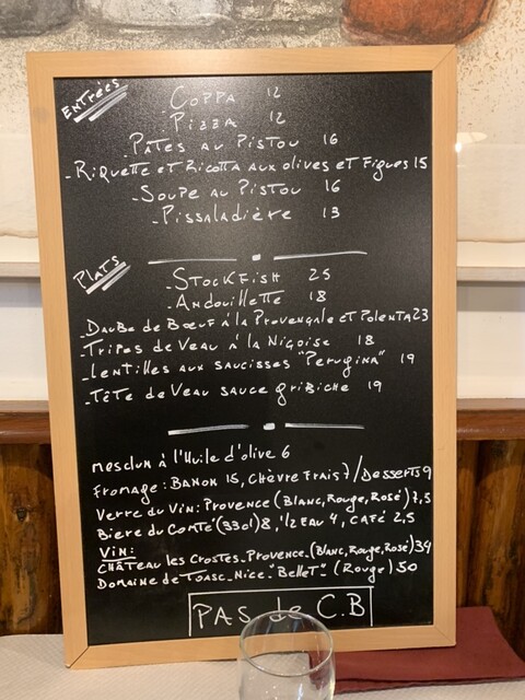 地中海寄り観光地エリアのビブグルマン、平日月曜休みの店多いせいもあり、12時開店と同時に満席です。当店もテーブルキチキチ、フランス語メニューのみキャッシュオンリー店。シェフはかつて星付店勤務だったもの...