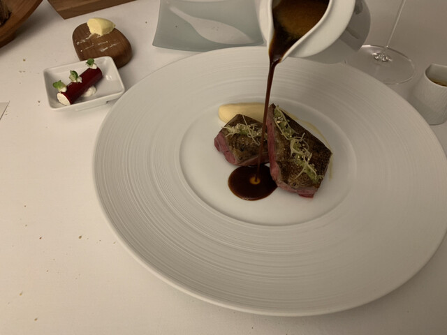 北アルザスのトップレストラン、2つ星でルレエシャトーになっています。フルコースメニューにしましたが、このクラスにしてはお安め。お味 アミューズから濃口の醤油・ピリ辛系、イクラもちょこちょこ入って食べやすいです。メインの分厚いピジョンはわさび掛けでございます〜。当レストランはホテル併設でなく、立地微妙で最寄りホテルからは歩けはしますが、真っ暗歩道なし多く、クルマ80kmオーバーでブンブン走ってはいます( ̄O ̄;)