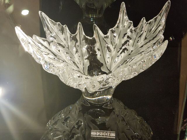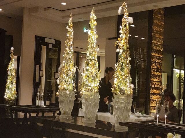 こちらのレストランはルネ・ラリック氏が工房として又デザイン事務所として使用していた家屋をオーベルジュに改装したモノであり、シャンデリアや料理の器は言うに及ばずドアの取っ手からトイレのペーパーホルダーまで当に遠慮会釈無くラリックのガラス製品が使われているのには圧倒される。また少し離れたところにはラリック美術館があり歴史的美術品が多数飾られている。