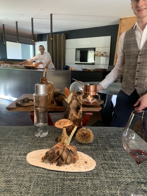 地図ではアヌシー東方山の中としか分からなかったですが、来てみたらなんと標高1.000mオーバー、ゲレンデの真ん前、いい天気で良かったです( ̄▽ ̄;)お店はグリーンスター認証の2つ星、山小屋をモダンにした暖かいインテリア。ウェルカムカクテルは2択、ウメシュスパークリングにしました〜。フレンドリーなマダムは説明時は日本語かまして顔面10cm位まで近付き、目と目がバチバチです( ̄∇ ̄) お料理は分かりやすい旨さ、鉄茶瓶・箸も出てきます。けど酸っぱいクリームソースは最近どこでもですね。物量多くてチーズ・デザートは全パス。年配のゲストがほとんど、良く皆さん食べられますね〜。