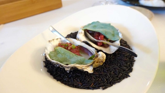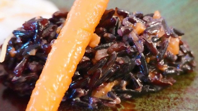 この黒米がまた、絶妙な茹で加減でアルデンテ、歯ごたえが適度にあって