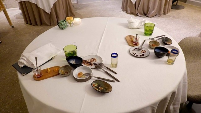 ほかのテーブルは2品ずつ出てきて、それを下げてから次が出てくるようでした。