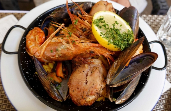 レストランの選び方が分からないので、仲間が写真で気に入ったパエリアの