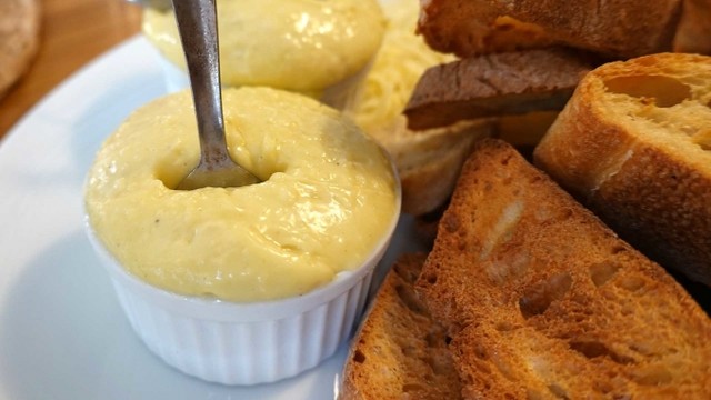 マヨネーズ風味のこちらをパンに付けて、スープに沈めて食べるのだそうです!