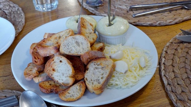 先にスープに付けて食べるパンが出てきました。