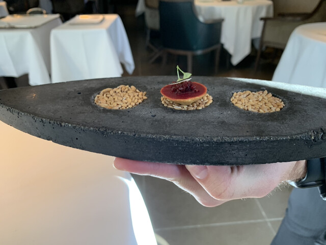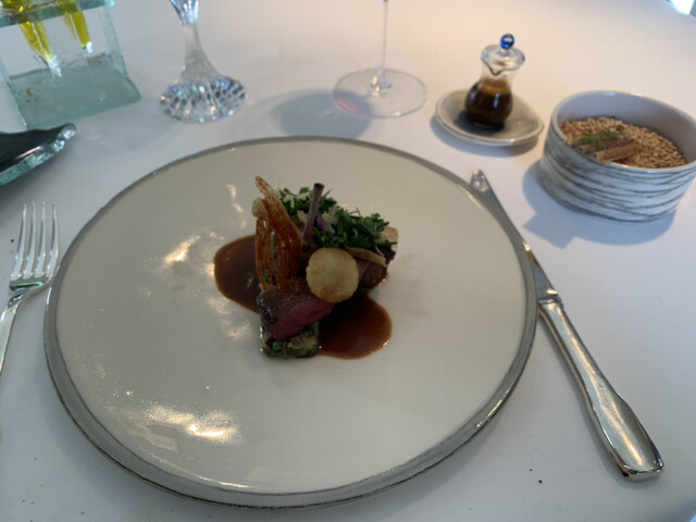 ルレエシャトー・ミシュラン2つ星・ゴエミヨ4トック・グランテーブルデュモンレストラン。閑静な住宅街に立地ですが、向かいの軍民共同飛行場にライアン航空が就航していてシャトルバスも出てますが、時間帯合わずでニーム駅からバス乗り継いで到着です。平日限定ランチがあったので、そちらをチョイス。クリエイティブ系、まずまずですがヨーロッパに良くあるアイスクリーム混じる前菜2皿、アイスクリームの天ぷら同様どうにも好きにはなれませんね( ̄▽ ̄;) メイン2品レッドマレとピジョン一転旨いっ。クルミ入パンもやけに旨く3つ食べてまいました(๑˃̵ᴗ˂̵)