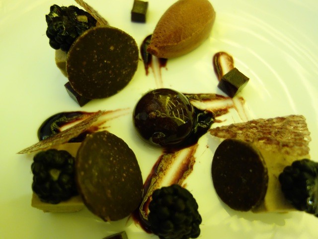 メインのデセールはチョコ尽くし!ムースがあると思いきやヘーゼルナッツ味のヘヴィ級。全てが重い。当レストランの哲学を署名するに相応しい一皿でした。
