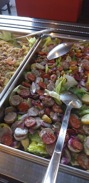 「サラダクリデイテ」「きのこのマリネ」「シーフードサラダ」「野菜のマリネ」「フリッタータ」「ハンバーガー」「タルテイ―ヌ」「パスタサラダ」シュリンプカクテル