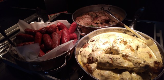 ローストポーク、(ソースが5種)、オニオンリング、フリットポテト・ポークチョップ、チキンフリカッセ、温野菜&焼き野菜、パスタクリームソース、バターライス