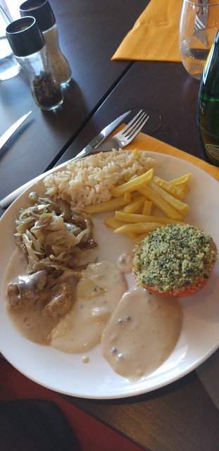 お肉はポークやチキンでどちらも柔らかくて選べるクリーム系やデミソースの旨味が絡んで美味。アッシパルマンテイエは、チーズの乗ったマッシュポテトの下に大きなステークアシェットが盛り込まれていました、豪快で嬉しい悲鳴。