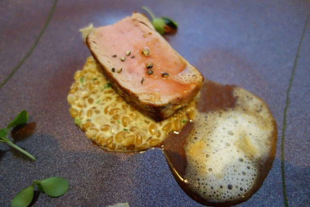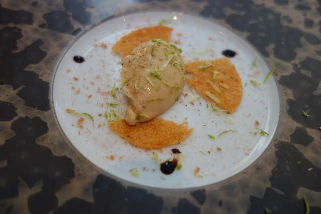フォアグラにカツオ節的粉末。フォアグラの旨味が強烈すぎて他の存在はすべてかき消されます。フォアグラ自体は美味しいから問題ないけれど、乱暴なお皿に感じました。