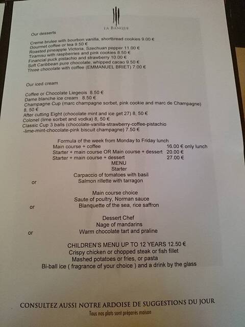 子供可、お子様メニューあり Plat + 1 boisson au verre + Glace 2 boules |