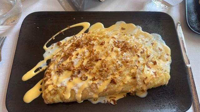 ラム肉とマスタードソースのオムレツ。単品だと7600円