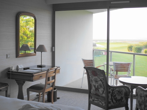 フランスに来て最初の宿泊先は、モン・サン・ミッシェルの対岸にある「ル ルレ サン ミッシェル」翌日の観光に備えて、近くのホテルで。レストランからはモン・サン・ミッシェルが望める素敵な立地♪お部屋からも見えるそうですが、私たちのお部屋からは見えませんでした。丁度この木々が邪魔だったのですね。尖塔が見えているのがわかりますか?サン・ミッシェルが尖塔で守っています。お部屋はとても居心地がよく、旅の疲れもほぐしてくれました。夕食の前菜はエスカルゴメインは白身魚のソテーと付け合わせのお野菜切り身が大きくて食べきれないかと思ったら、とても美味しくて完食。