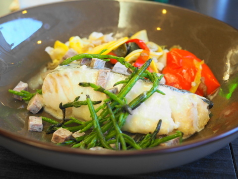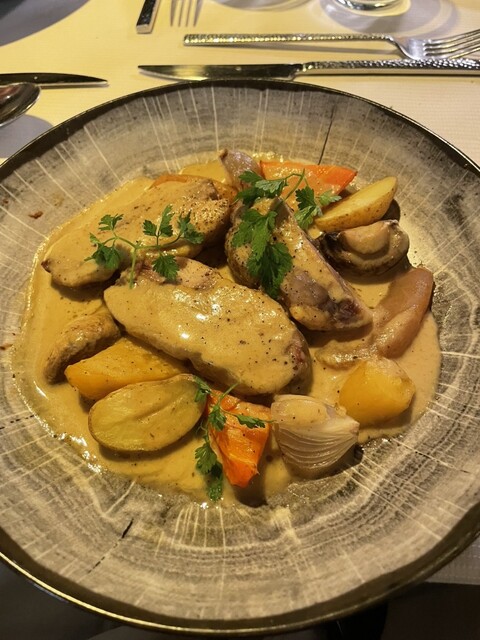 四つ星ホテルのレストランで、モンサンミッシェルを見ながらの夕飯