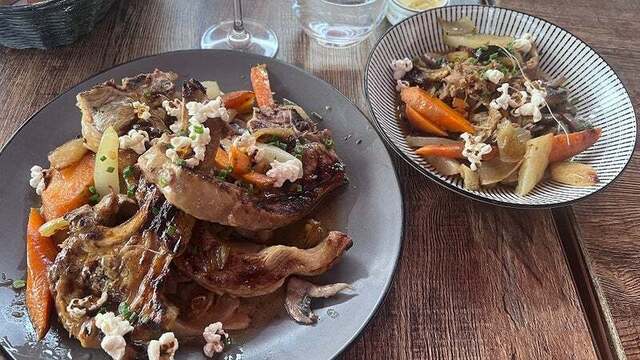 左がプレサレのグリル・右がコースのプレサレ料理なんだけど煮込みでした