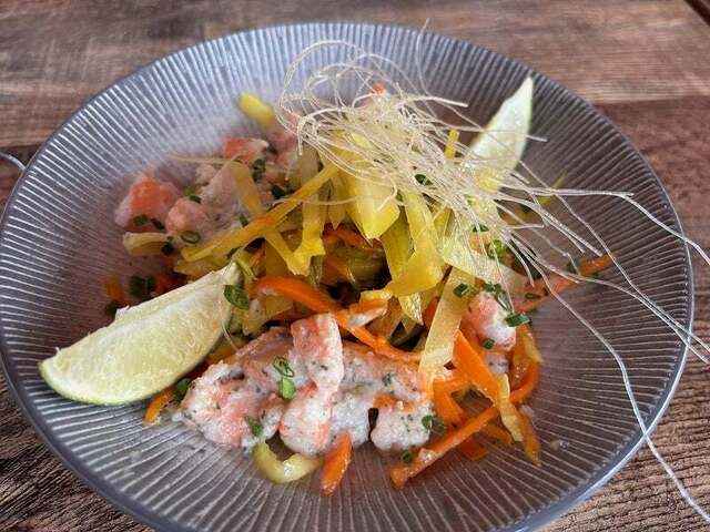 前菜はビネガーでマリネされた野菜にサッパリとした物が混ざってるので凄く食べやすい