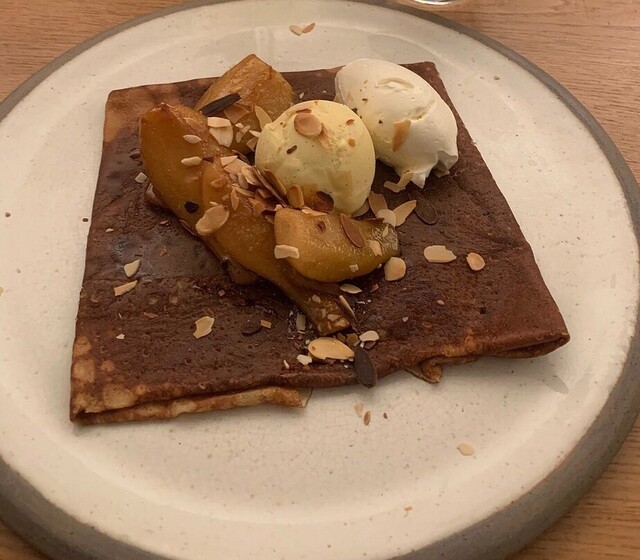 《小麦粉のガレット/林檎のコンポート、マダガスカルヴァニラ》