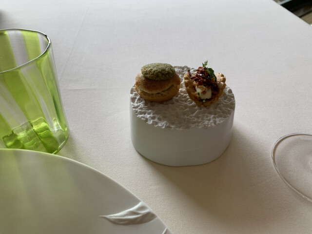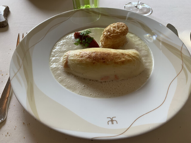 ストラスブールとコルマールの中間、歴史あるレストラン。真ん前に停めてくれる路線バスは4€で1日3本、ランチとディナーちょうどいい時間帯にありますが、帰路は時間合わずです。平日ランチは満席ってわけでもなく、予約は取りやすいです。お料理は日本で2〜3回食べている定番。サーモンスフレが顕著ですが、本店はポーション大きく、サーモンがフワッとしてます、反面クリーム酸味強めではあります。来月シェフ来日、名古屋と札幌でガラディナー。名古屋は売切の模様です。欧州レストランで陛下のサイン入写真見るの2回目。