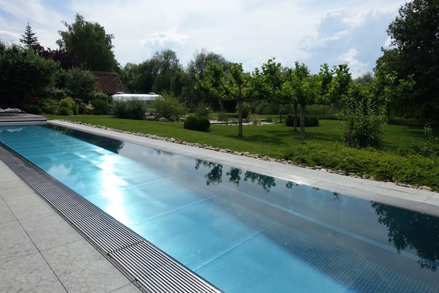 プールに向かう。ステンレスが支配的であり現代的にピカピカと輝きます。6月初旬ながら大変に暑く、水着を持ってこなかったことを少し後悔。
