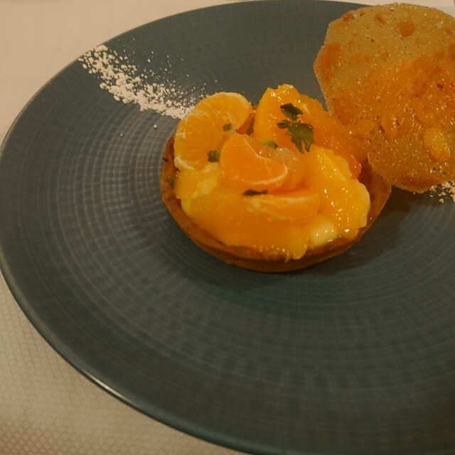 デザートはCitrus Tart, Ogange Pastry, Citrus Supremes with mint and Lemon Zest, Citrus Sorbet。