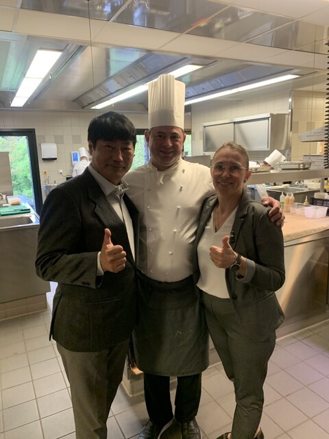 Chaudes-Aiguesのルレエシャトー2つ星オーベルジュ、こちらも丘の上。地図上徒歩圏内だったので、ダウンタウンのホテル泊。けど歩いて向かうと歩道もないクルマガンガン通る道。とぼとぼ歩いていると日産ジュークに乗ってるマダムがchâteau〇〇?と声をかけて下さり、お送りいただきました╰(*´︶`*) シェフは2005年のボキューズドールウィナー。キッチン拝見すると辻調リヨン校の派遣生がいます。内陸なのに不思議と魚介も旨いのはさすが星付。ソムリエのグラスワイン注ぎっぷりも良いです\(//∇//)\ 物量日本並みなので、問題なく完食。帰路は日没時でまだ明るく、歩いて帰りました♪