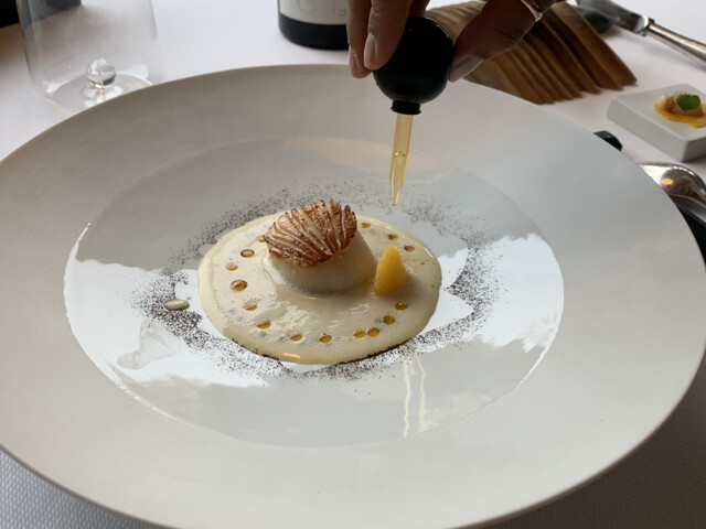 最寄りのChalon Sur Saône駅からバスも出ていますが、ソーヌ川沿いにぷらぷら小一時間歩いて到着、サン・レミの2つ星。着席するとサービススタッフ全員入れ替わり挨拶に来ます。安価な平日ランチもありますが、ディナーの少なめチョイス。海なしエリアですが魚介中心、バター、お料理前半スモーキー、合わせてワインもスモーキー、モンラッシェでこんなスモーキーテイストがあるのかと思ったら、スイスワインはさらにでした(//∇//) お料理はメインの肉質以外はかなりよく、ブルゴーニュエリアだとGeorges Blanc、Maison Lameloiseに続き3つ星になるかも?ならないまでも上位の2つ星ですね。