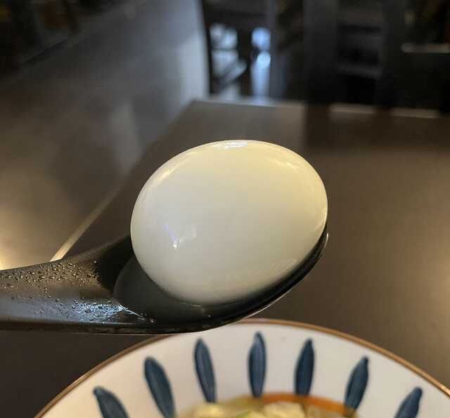 チャーシューはアジアンな感じ、それから白い玉子はプレーンなゆで卵でした。