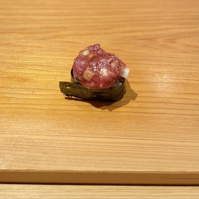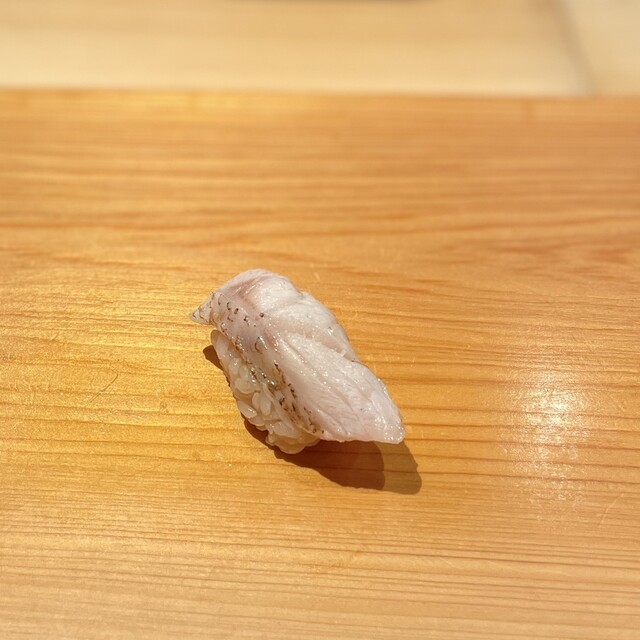 小肌も小ぶりで品があって好きですが、鮪の直後に小肌を出すお店が多い中、鮪の直前に小肌を出すのは珍しいなと感じました。他の鮨屋ではあまりそういう体験はない記憶。