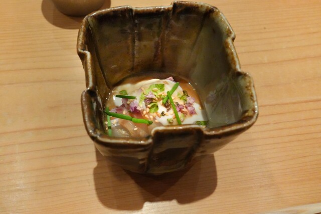 随分、間があいてしまったが、また来ることができて良かった。博多の鮨の名店さかい、西中洲にある。ビルの3階に屋敷ぽい門があり、石灯篭をぬけるとL字カウンターがある。久しぶりにもかかわらず、大将は私の事をおぼえてくれていた。ありがたい。