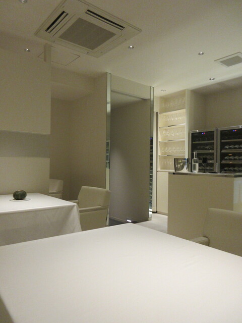 10席。テーブル席と半個室。白とシルバーのみで構成された上品な白の空間。