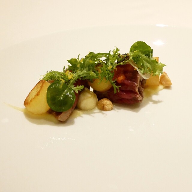 白い皿をキャンパスのように見立てた料理の美しさ、様々な食材を併せたハーモニーの奏で方が一級品のお店です。