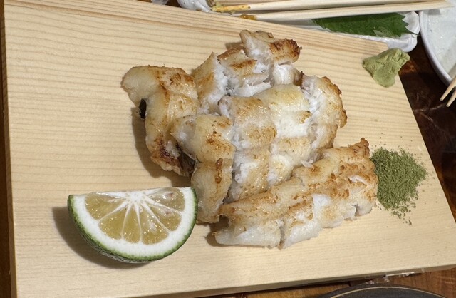 ◎ 対馬産穴子の白焼 穴子が美味しいのは言うまでもないが、山椒も和歌山のお店から取り寄せているらしく、大将の素材一つ一つに良いものを提供しようという心意気が感じられました。