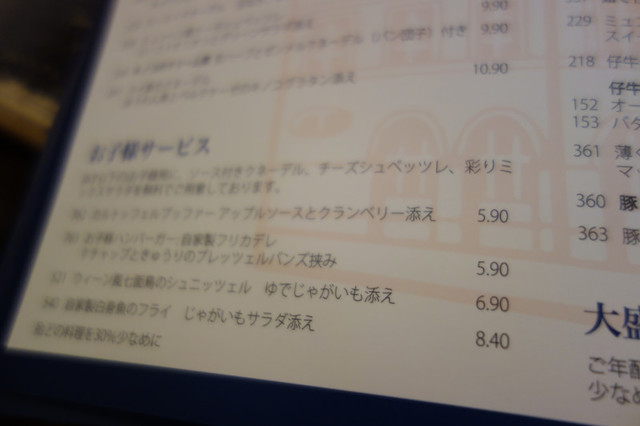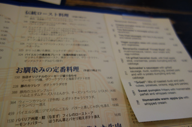 豚のカツレツ11.4ユーロ(1,520円くらい?)、ビーフスープ4.9ユーロ(650円くらい?)