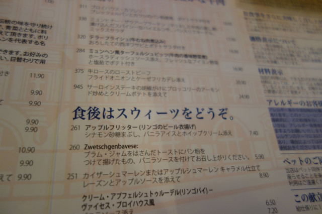 スクランブルエッグ6.9ユーロ(920円くらい?)、アップルフリッター7.4ユーロ(985円くらい?)等