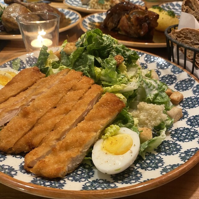 サラダと言いつつ鶏のシュニッツェルの存在が大きな狗頭羊肉的割烹。