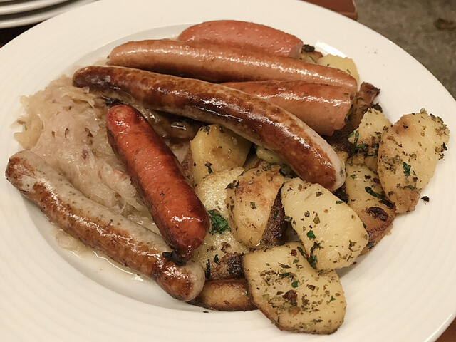 シュバイネハクセと子牛のソーセージ、ヴァイツェンビールをいただきました。